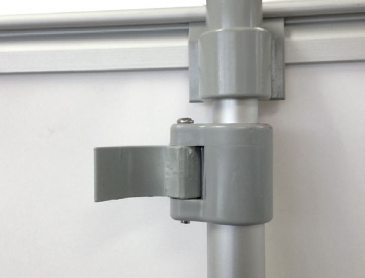 Release clamp on pole (fig. D). Pull up on upper section of pole and top rail.