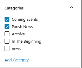 - On the right-hand side, locate Categories and either click on the box next to the category you want or click +Add New Category.