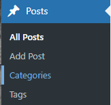 - Once logged in, hover over Posts in the menu on the left-hand side of the Dashboard and select Categories.