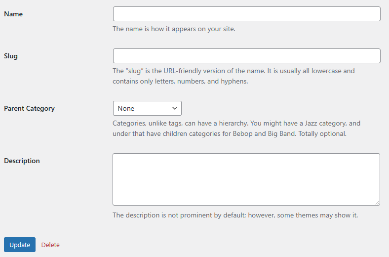 Note: If you edit the slug, you may be changing the URL of each post in this category. This may cause links throughout your website to break. Not Recommended - Click Update to save your changes.