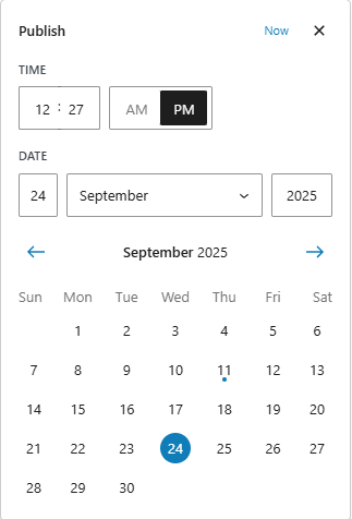 For example, if you want a Christmas Mass Times post to display on your website starting December 1. Even though it may be October, you can schedule the day it begins to display.