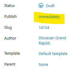 - Click Immediately next to Publish in the right-hand sidebar of the page editor.