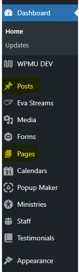 - Once logged in, click on Pages or Posts in the menu on the left-hand side of the Dashboard.