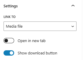 9. If using a File block, you can edit the settings on the right sidebar to open in a new tab or show/hide the download button. You can also edit the Download button text within the button itself.