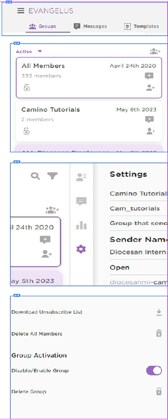 - Click on the toggle to Disable the group This group will now be disabled and filter to the bottom of your group’s active list.