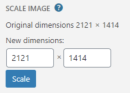 - Proportionally scale the original image. For best results, scaling should be done before you crop, flip, or rotate. Images can only be scaled down, not up. The original dimensions are displayed as a guideline above the box for entering new dimensions.