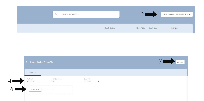 - Click IMPORT ONLINE GIVING FILE in the top right