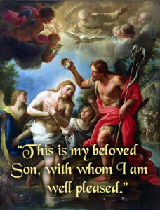 Almighty ever-living God, who, when Christ had been baptized in the River Jordan and as the Holy Spirit descended upon him, solemnly declared him your beloved Son, grant that your children by adoption, reborn of water and the Holy Spirit, may always be well pleasing to you. Through our Lord Jesus Christ, your Son, who lives and reigns with you in the unity of the Holy Spirit, one God, for ever and ever.