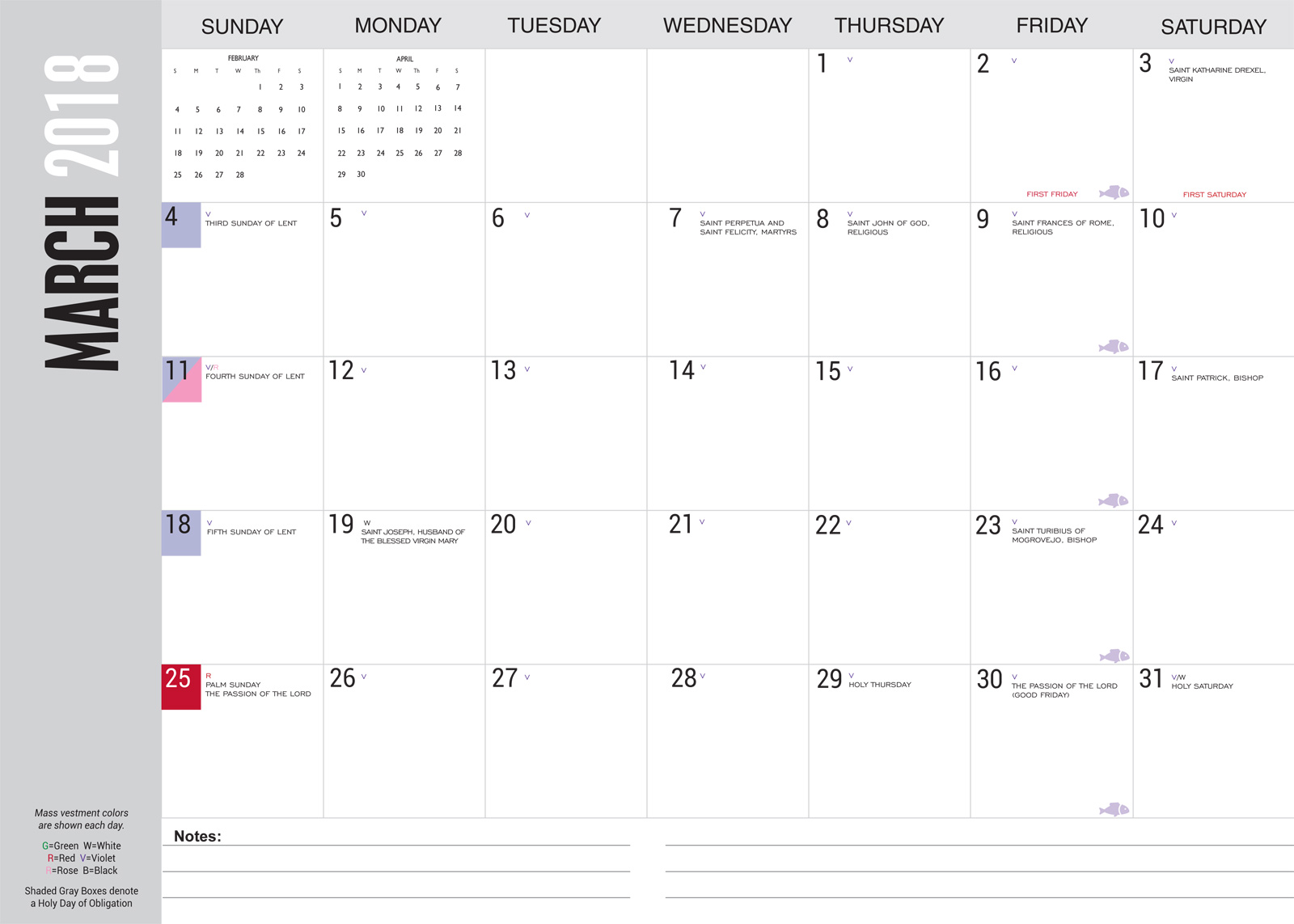 We have designed our Planner with ease of use in mind: at 10″ X 14″, with a sturdy stock glossy cover, each month is perfectly laid out to highlight important Catholic feast and celebration days.Whether at your desk, or in a meeting, the 2018 Liturgical Planner is an essential tool for planning, scheduling, coordinating, and managing your Catholic life. It also makes a wonderful gift for your parishioners or parish office staff!