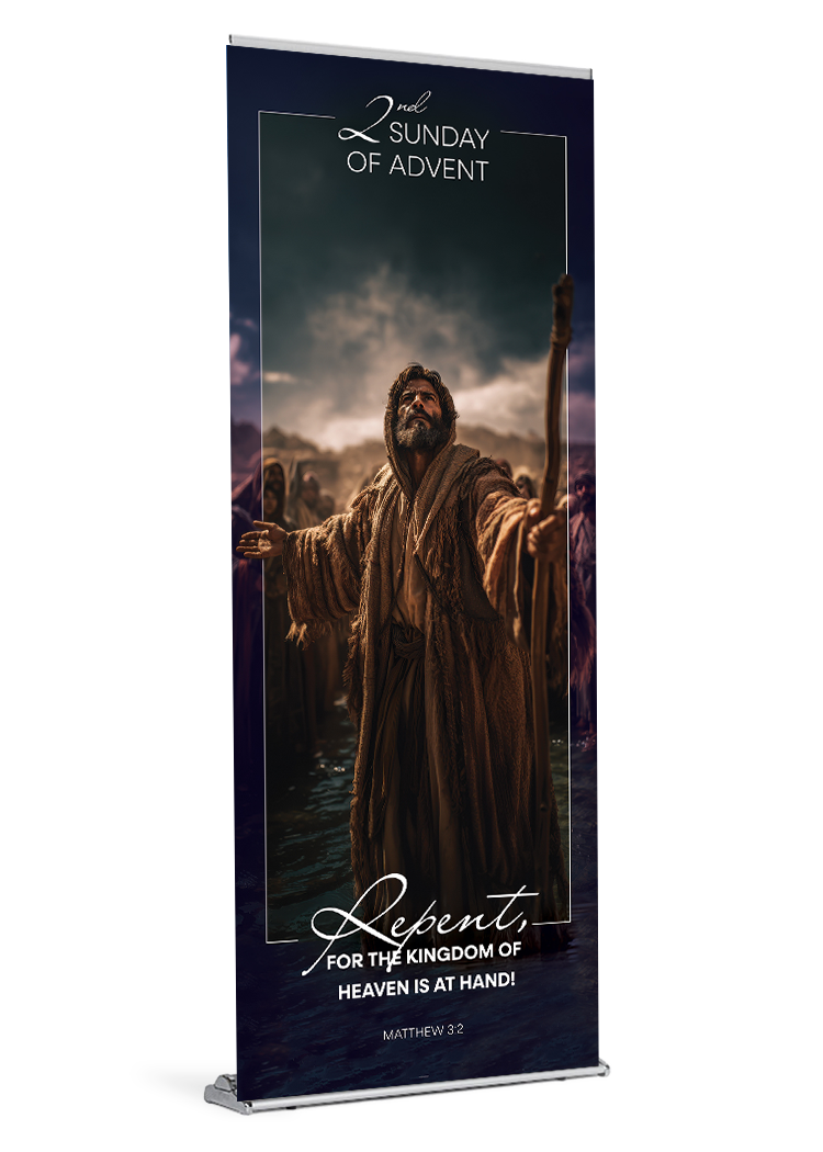 If you ordered a banner with your stand the banner will come installed and ready be displayed. All you need to do is insert the pole and pull the banner up. If your parish already owns a stand, your banner will arrive with a bottom rail that is quick and easy to slide into your stand.