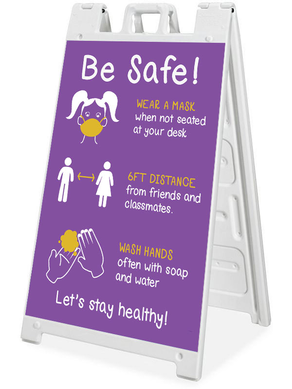 These Sidewalk A-Frame signs are made of high-grade, molded plastic and ready to place to announce your latest event. They can be weighted with sand to ensure they stay put, but are still easy to more with the built-in handle. Each A-Frame comes with 2 identical 24″ x 36″ 4mm coroplast prints that easily slide into the frame. This feature makes it easy to reorder and change out the message as needed.