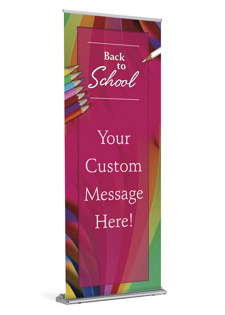 This Back to School banner is approximately 84″ tall. All banners are printed on durable, high quality paper with water resistant inks.