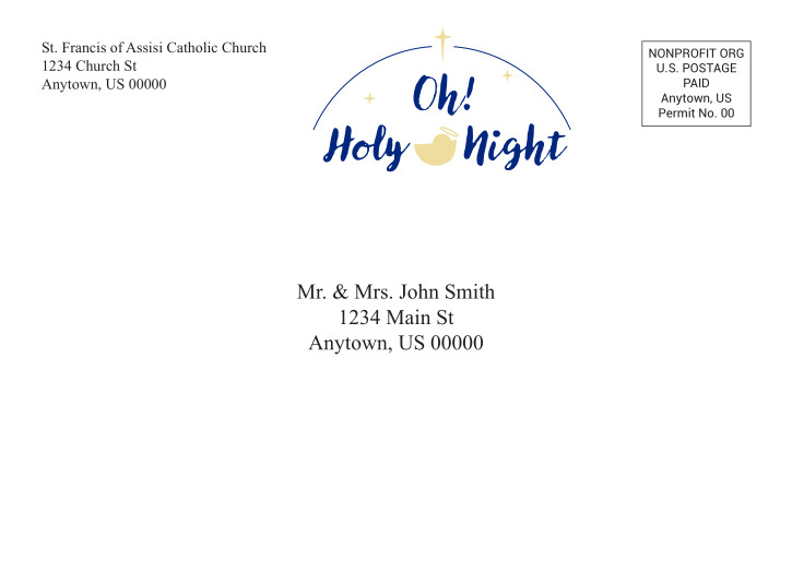 Personalize your Christmas card by adding custom text to both sides of the Interior. This is a great way to promote the special Christmas schedule on the left and custom prayer or message from Father on the right.