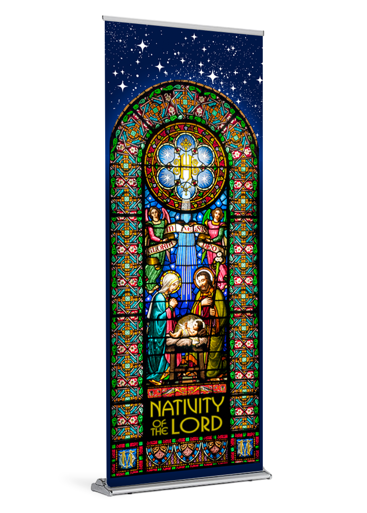 Advent baby jesus banner Birth of Christ Celebration Christ christmas display emmanuel gloria Holy Family Nativity Nativity of the Lord retractable savior standProduct Details