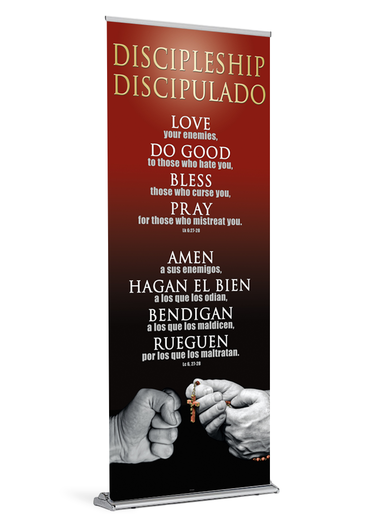 banner banner stand catholic catholic banner catholic banners discipleship Pray Pray for Peace retractable social justice stand World Day of PrayerProduct Details
