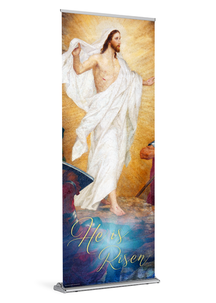 Alleluia! He is Risen. Celebrate the miracle with this elegant banner.