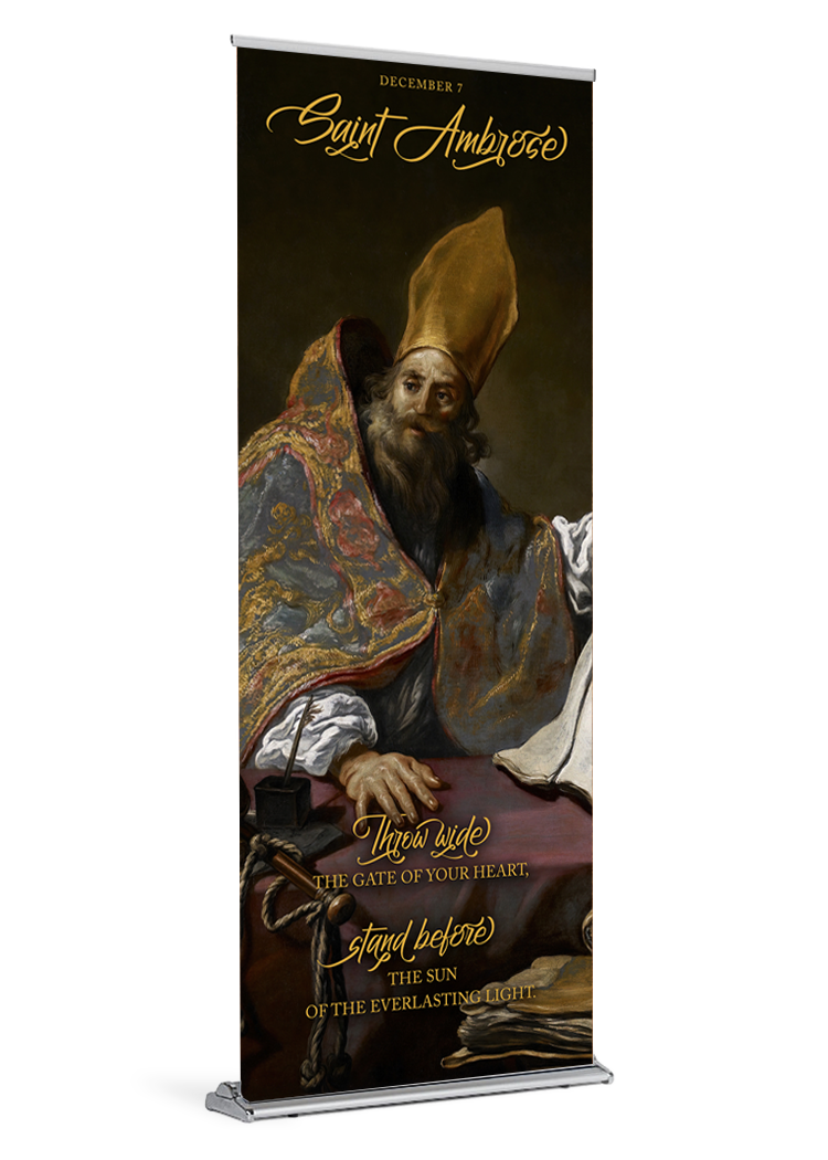 Ambrose banner banner stand catholic catholic baners catholic banner Feast Day patron Patron Saint saint Saint Ambrose st ambrose standProduct Details