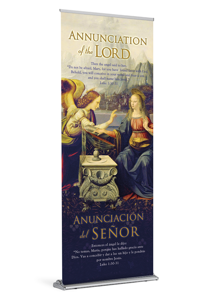 Angel angel gabriel Annunciation Annunciation of Mary banner banner stand catholic display Gabriel Mary retractable standProduct Details