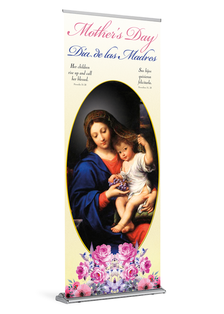 Honor our Blessed Mother and all mothers with this beautiful Mother’s Day banner.