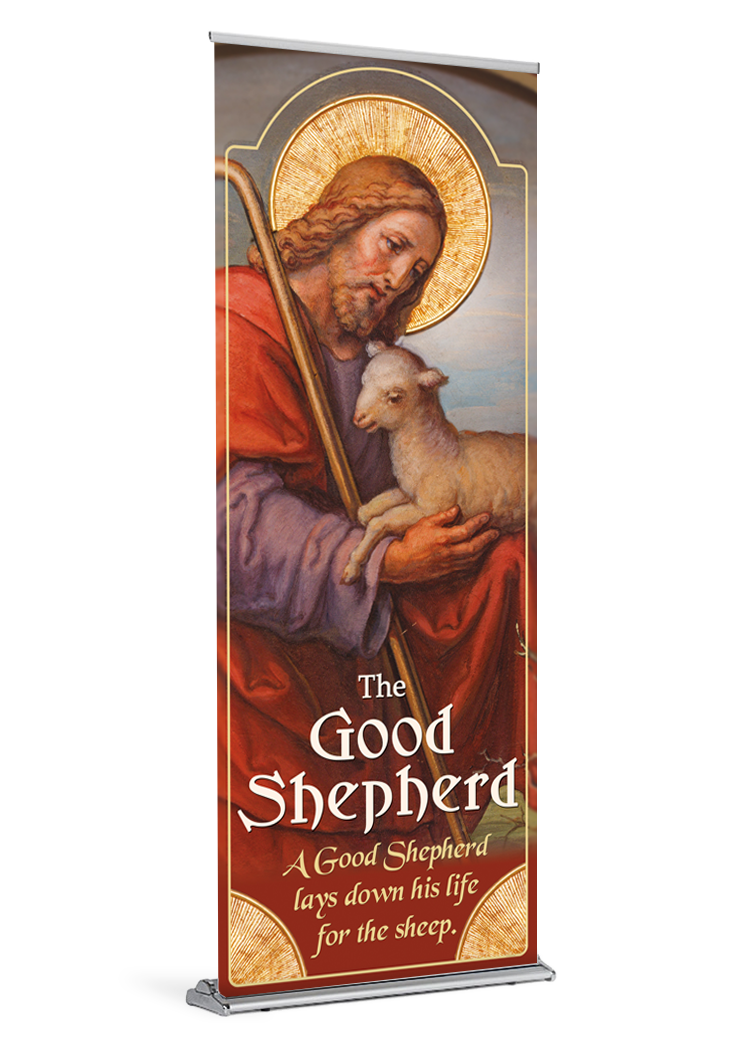 banner banner stand catholic catholic banner catholic banners Good Shepherd Jesus retractable Sheep Shepherd standProduct Details