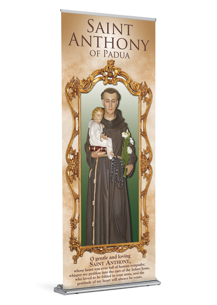 anthony banner banner stand catholic catholic banner catholic banners Feast Day padua patron Patron Saint saint saint anthony of padua St Anthony standProduct Details
