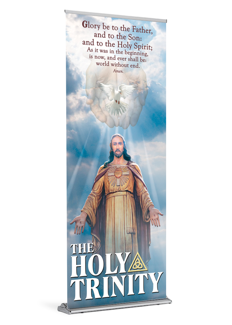 banner banner stand catholic catholic banner catholic banners God Holy Spirit Holy Trinity Jesus retractable stand TrinityProduct Details
