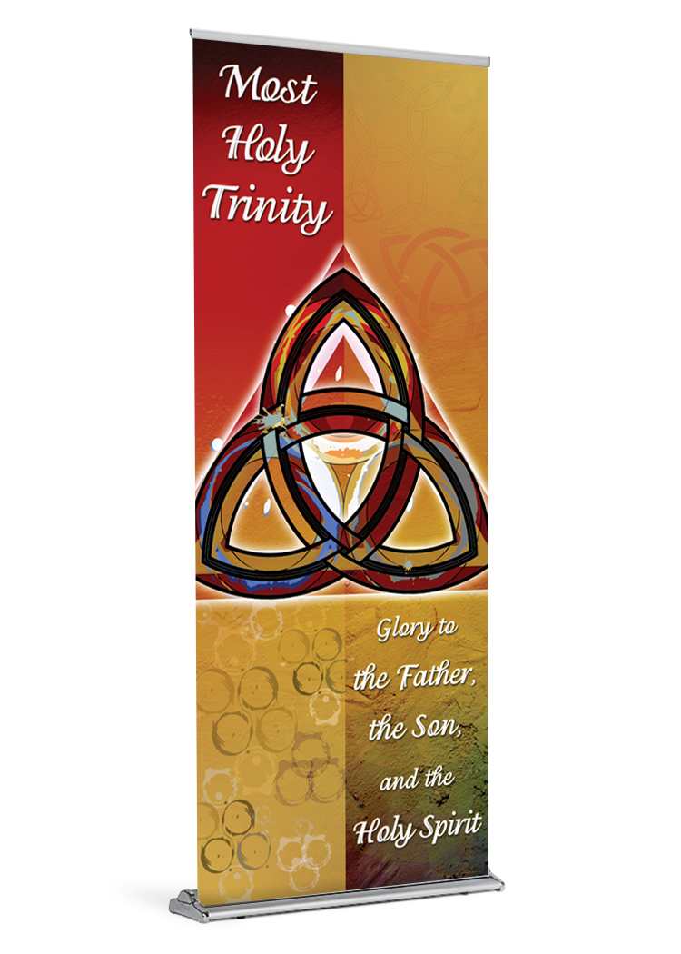 banner banner stand catholic catholic banner catholic banners God Holy Spirit Holy Trinity Jesus retractable standProduct Details