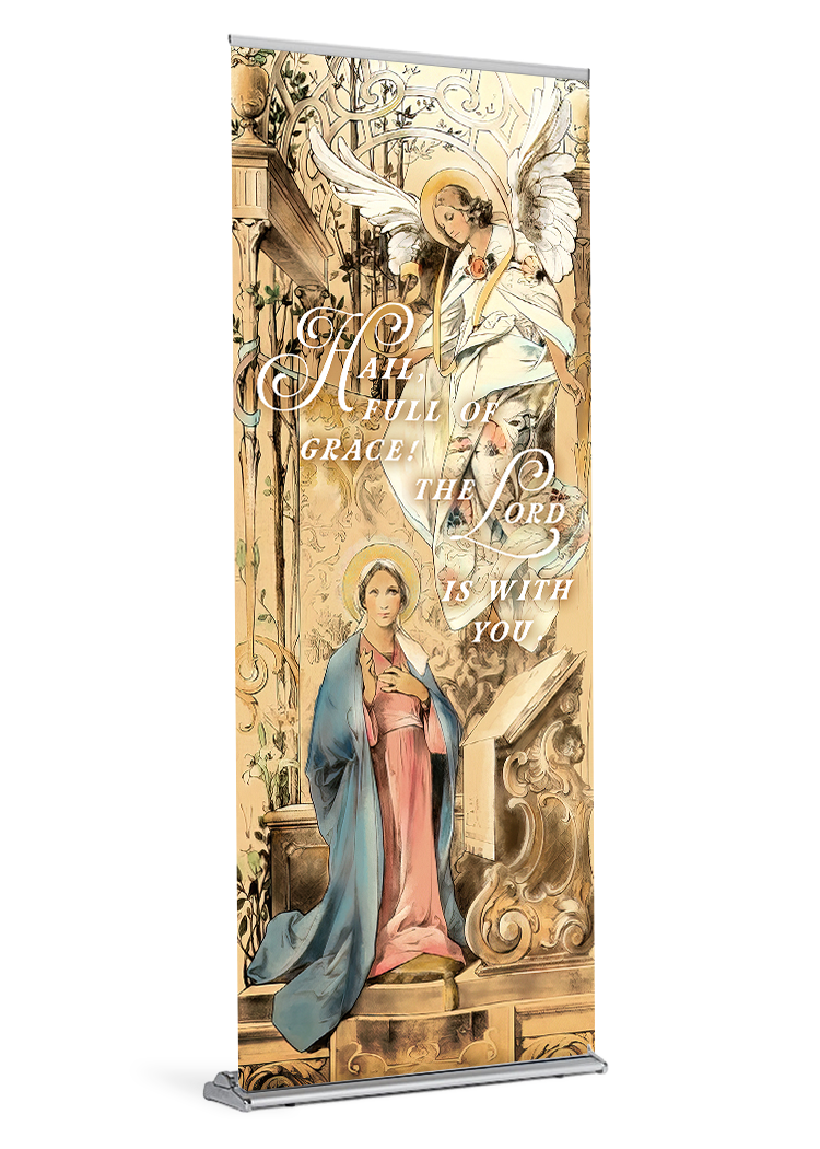 Angel angel gabriel Annunciation Annunciation of Mary banner banner stand catholic display Gabriel Mary retractable standProduct Details