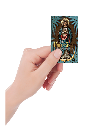 These premium cards are professionally printed on quality, heavy card stock. They are conveniently sized at 2″ x 3.5.” This makes them the perfect size for your pocket, purse, or wallet. The glossy, UV finish makes our prayer cards more durable and will last longer under normal usage.