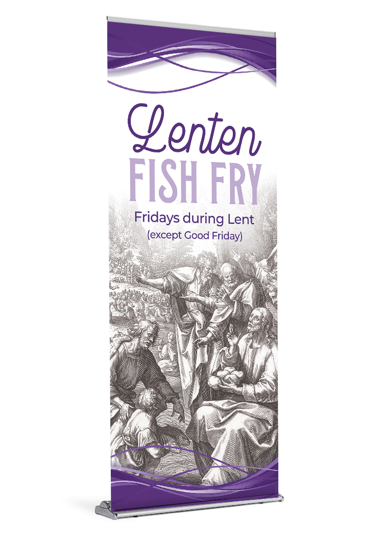 This banner will surely grab the attention of parishioners and others during the Lenten season. Durable and nicely-designed, this banner will serve your parish well.