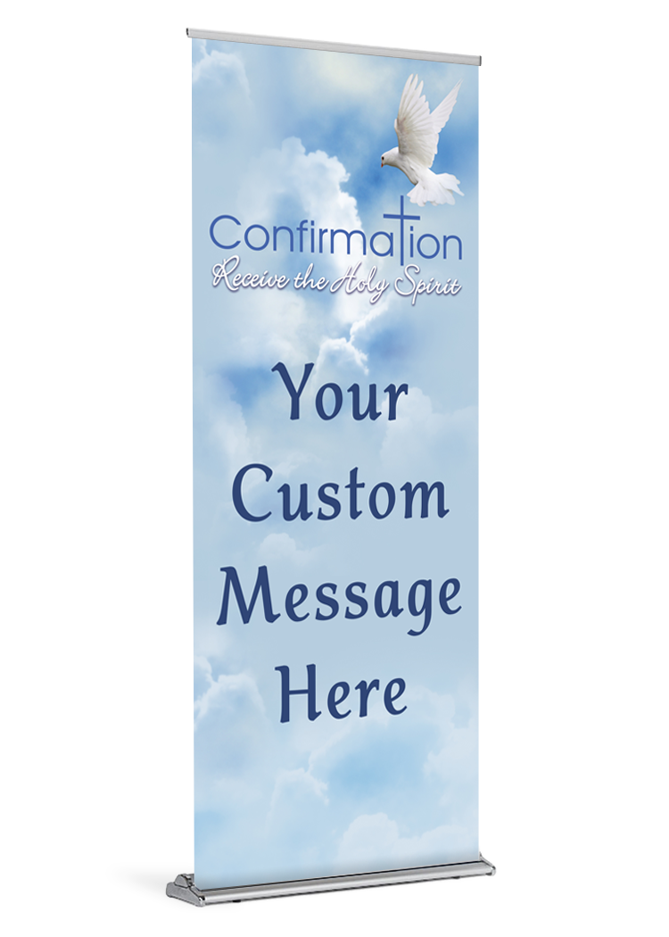 banner catholic catholic banner catholic banners confirmation custom customizable customize first Holy Spirit retractable standProduct Details