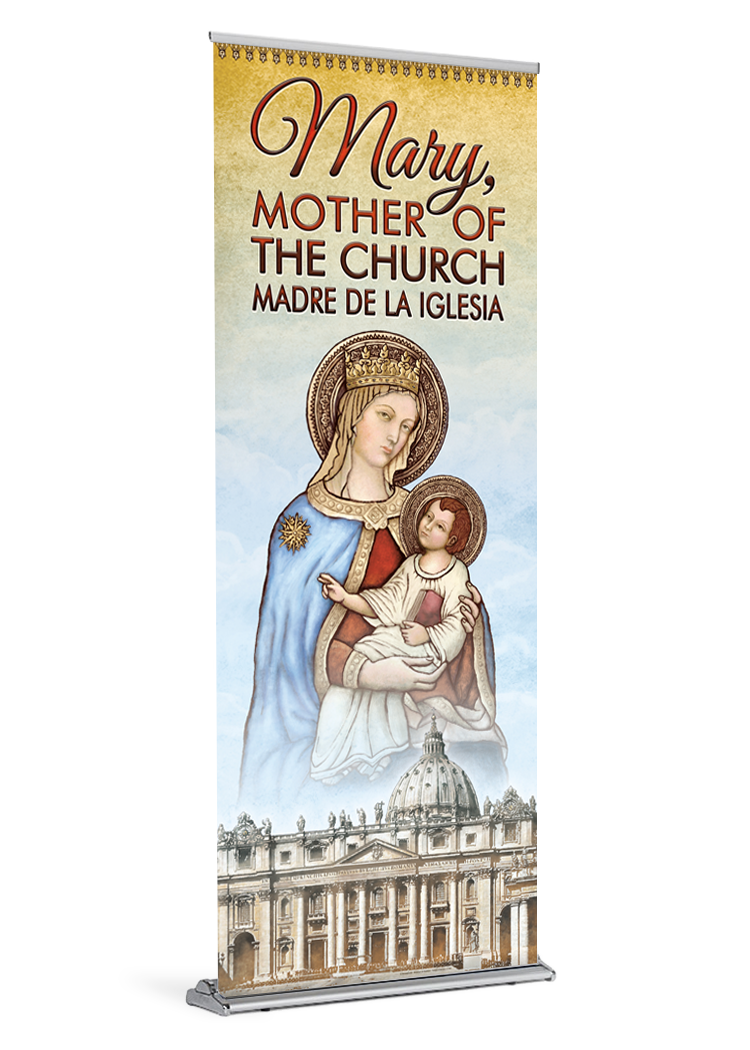 banner catholic catholic banner catholic banners di bartolo Jesus madonna madonna and child Mary Mother mother of the church retractable saint standProduct Details