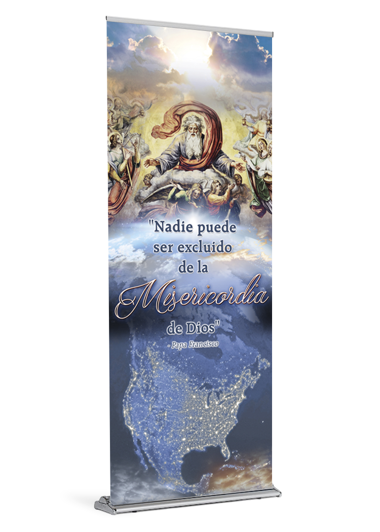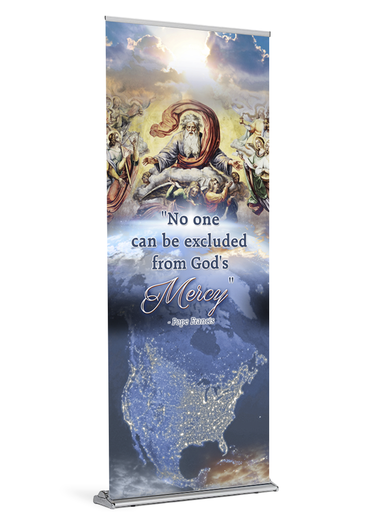 This Mercy banner is approximately 84″ tall. It is printed on durable, high quality paper with water resistant inks.