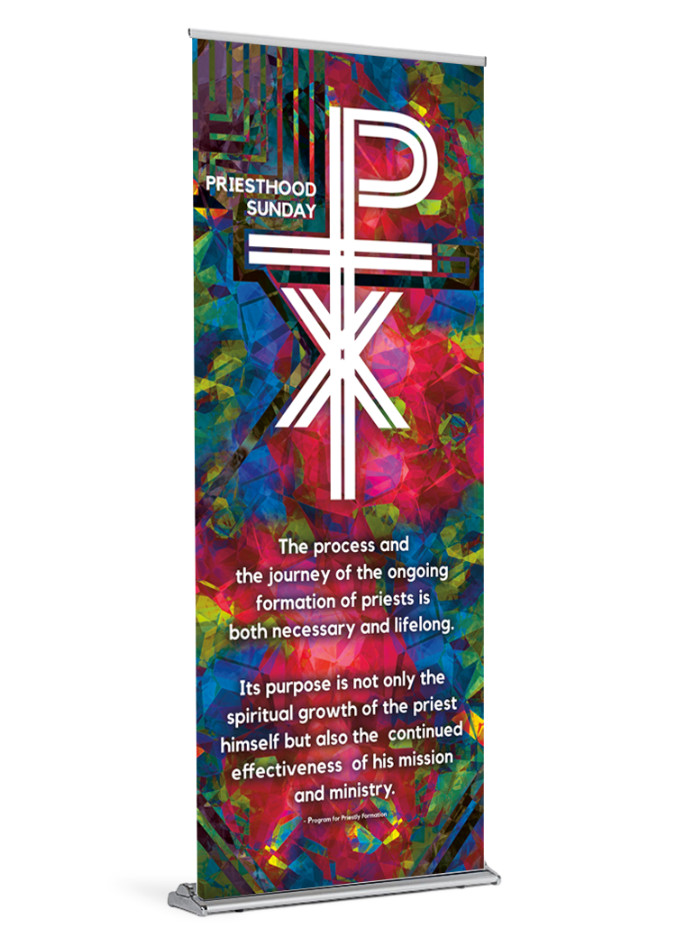 Celebrate the Priests and Deacons in your parish with this striking banner design.