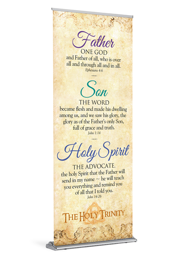 banner banner stand catholic catholic banner catholic banners God Holy Spirit Holy Trinity Jesus retractable stand TrinityProduct Details