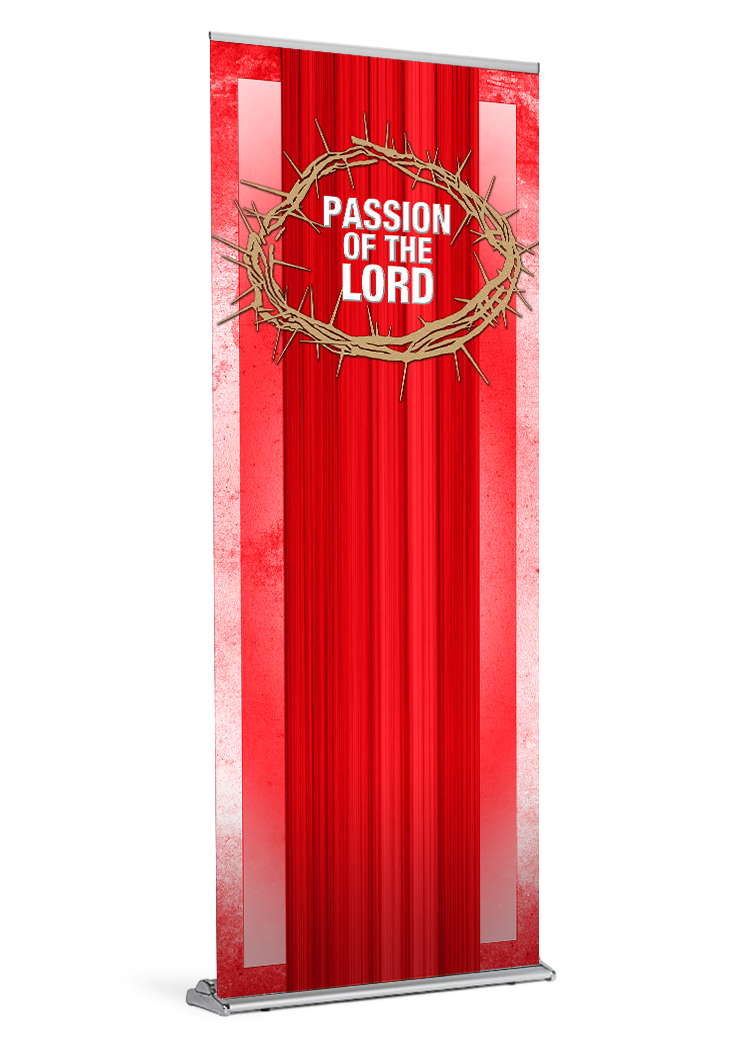 If you ordered a banner with your stand the banner will come installed and ready be displayed. All you need to do is insert the pole and pull the banner up. If your parish already owns a stand, your banner will arrive with a bottom rail that is quick and easy to slide into your stand.