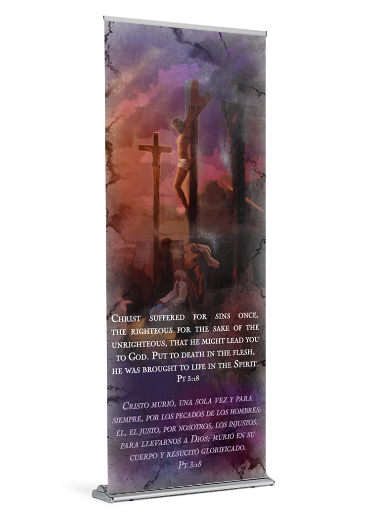 This Palm Sunday banner is approximately 84″ tall. It is printed on durable, high quality paper with water resistant inks.
