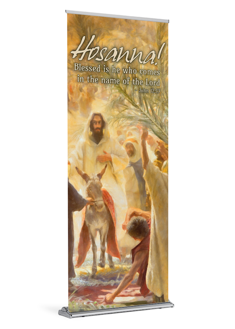 Hosanna! Celebrate Palm Sunday with this distinctive banner. Hosanna in the highest!
