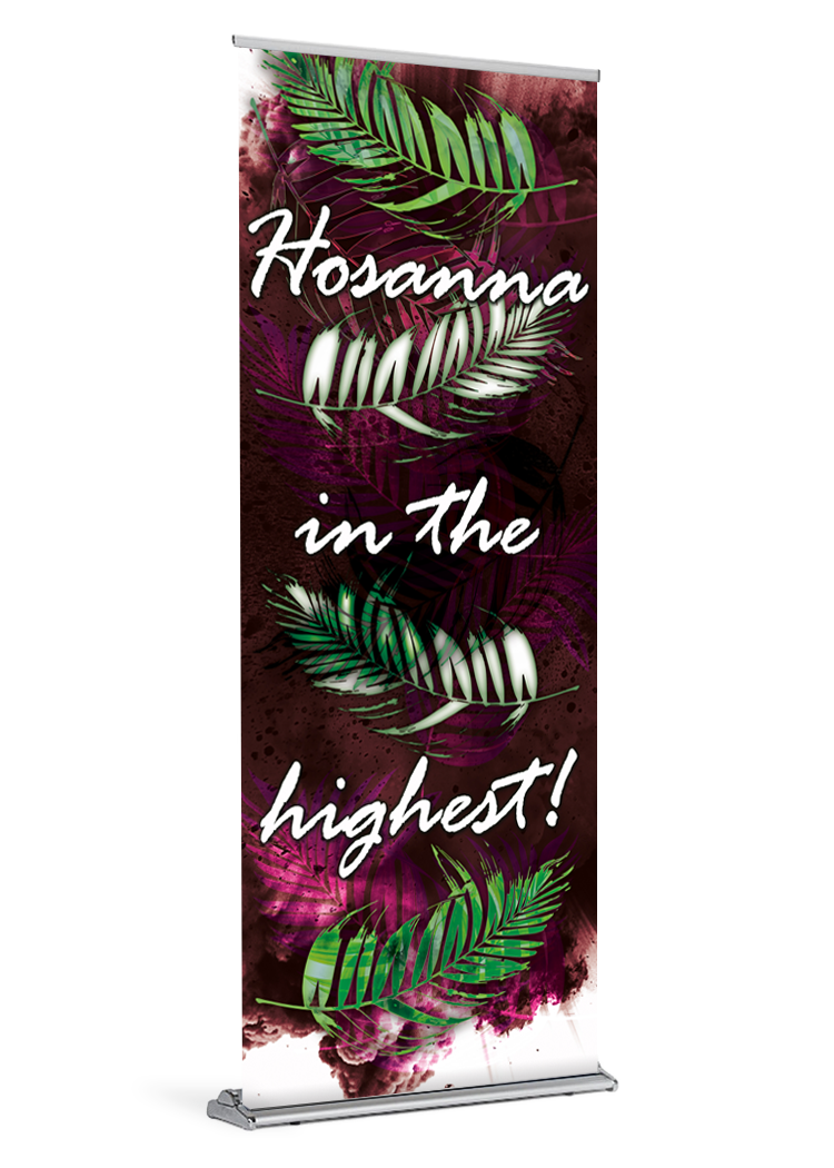 Hosanna! Celebrate Palm Sunday with this distinctive banner. Hosanna in the highest!