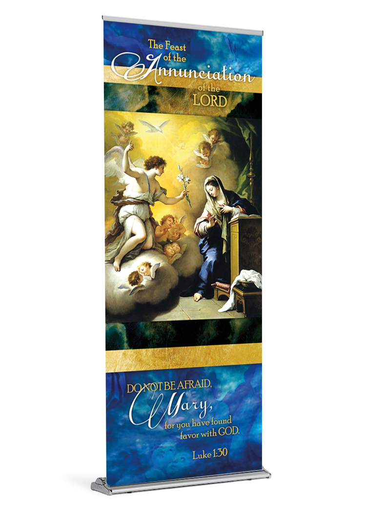 Angel Annunciation Annunciation of Mary banner banner stand catholic catholic banner catholic banners display Gabriel Mary retractable standProduct Details
