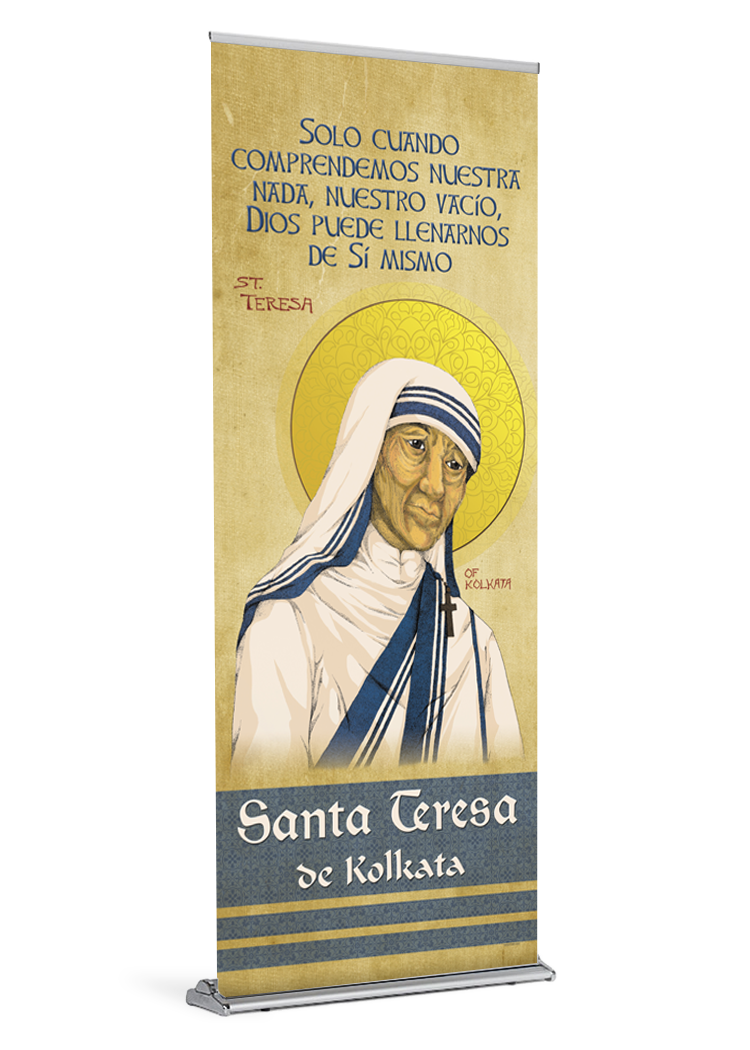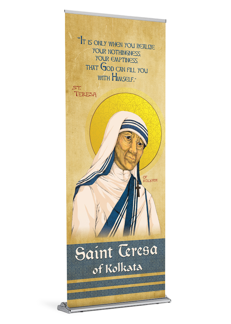 banner banner stand Blessed Calcutta catholic catholic baners catholic banner Kolkata Mother Mother Teresa Patron Saint retractable saint Saint Teresa September 4 stand TeresaProduct Details