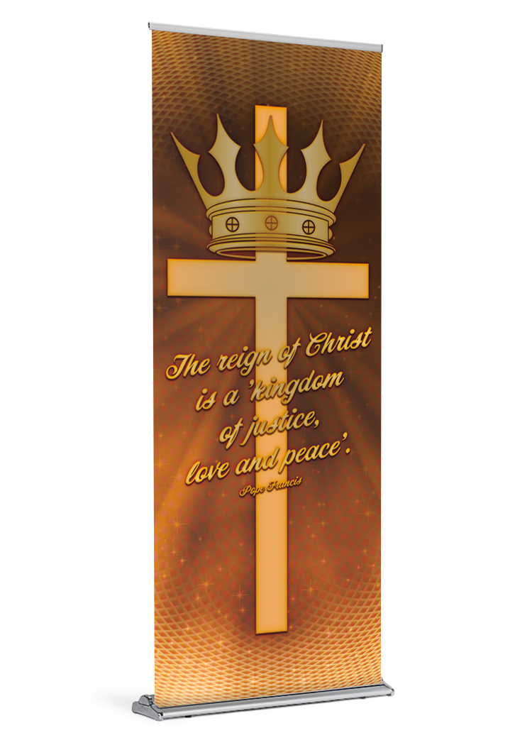 banner banner stand banners catholic catholic banner catholic banners Christ the King day Feast Day Jesus king of kings Patron Saint saint standProduct Details