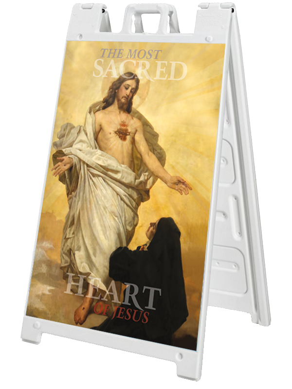 These Sidewalk A-Frame signs are made of high-grade, molded plastic and ready to place to announce your latest event. They can be weighted with sand to ensure they stay put, but are still easy to more with the built-in handle. Each A-Frame comes with 2 identical 24″ x 36″ 4mm coroplast prints that easily slide into the frame. This feature makes it easy to reorder and change out the message as needed.