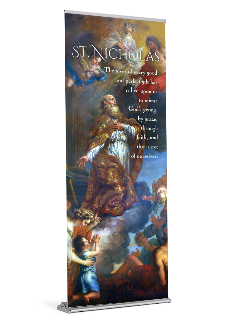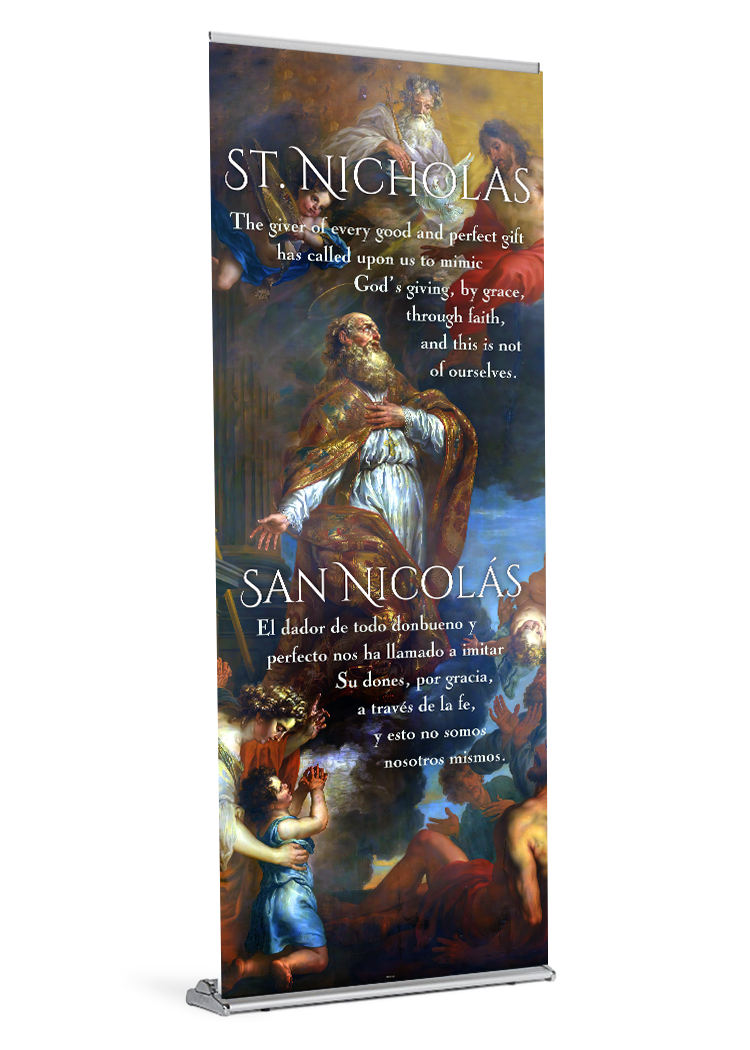 banner banner stand catholic catholic banner catholic banners christmas nicholas retractable saint Saint Nicholas St. Nick standProduct Details