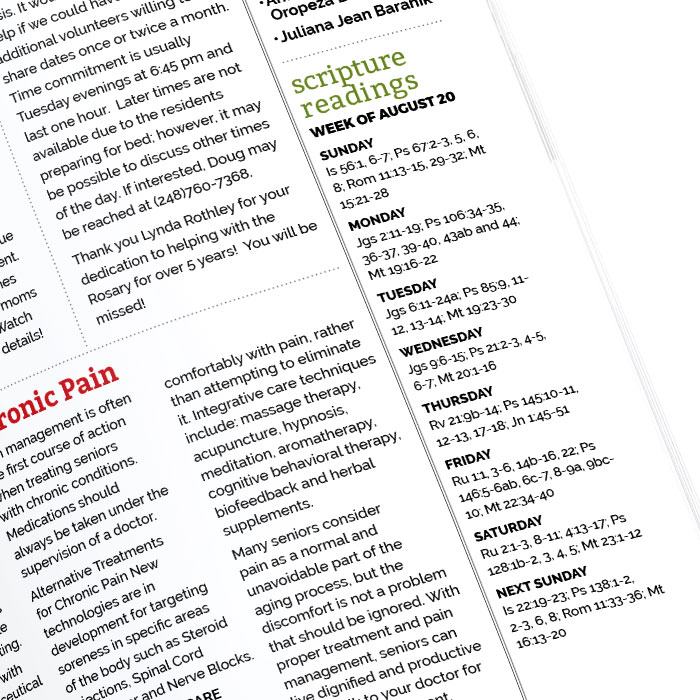 Conveniently download the weekly Scripture readings to use in your bulletin. Offered in English and Spanish, simply copy and paste onto your bulletin page.