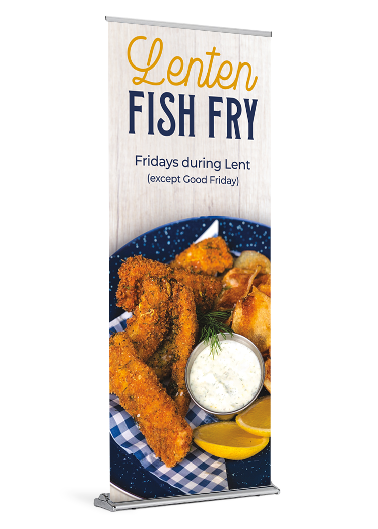 This banner will surely grab the attention of parishioners and others during the Lenten season. Durable and nicely-designed, this banner will serve your parish well.