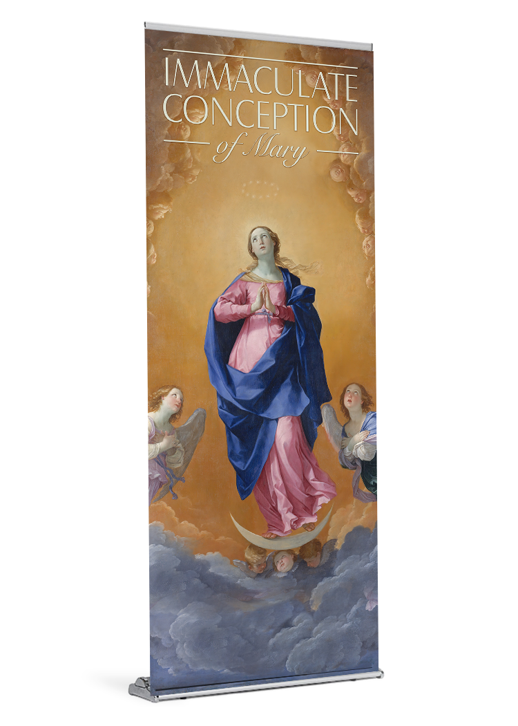 Angels banner banner stand catholic display Immaculate Immaculate Conception Mary mary immaculate Month of Mary retractable saint standProduct Details