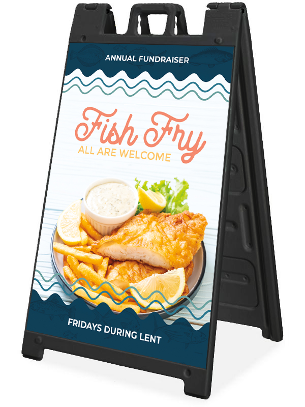 These Sidewalk A-Frame signs are made of high-grade, molded plastic and ready to place to announce your latest event. They can be weighted with sand to ensure they stay put, but are still easy to more with the built-in handle. Each A-Frame comes with 2 identical 24″ x 36″ 4mm coroplast prints that easily slide into the frame. This feature makes it easy to reorder and change out the message as needed.